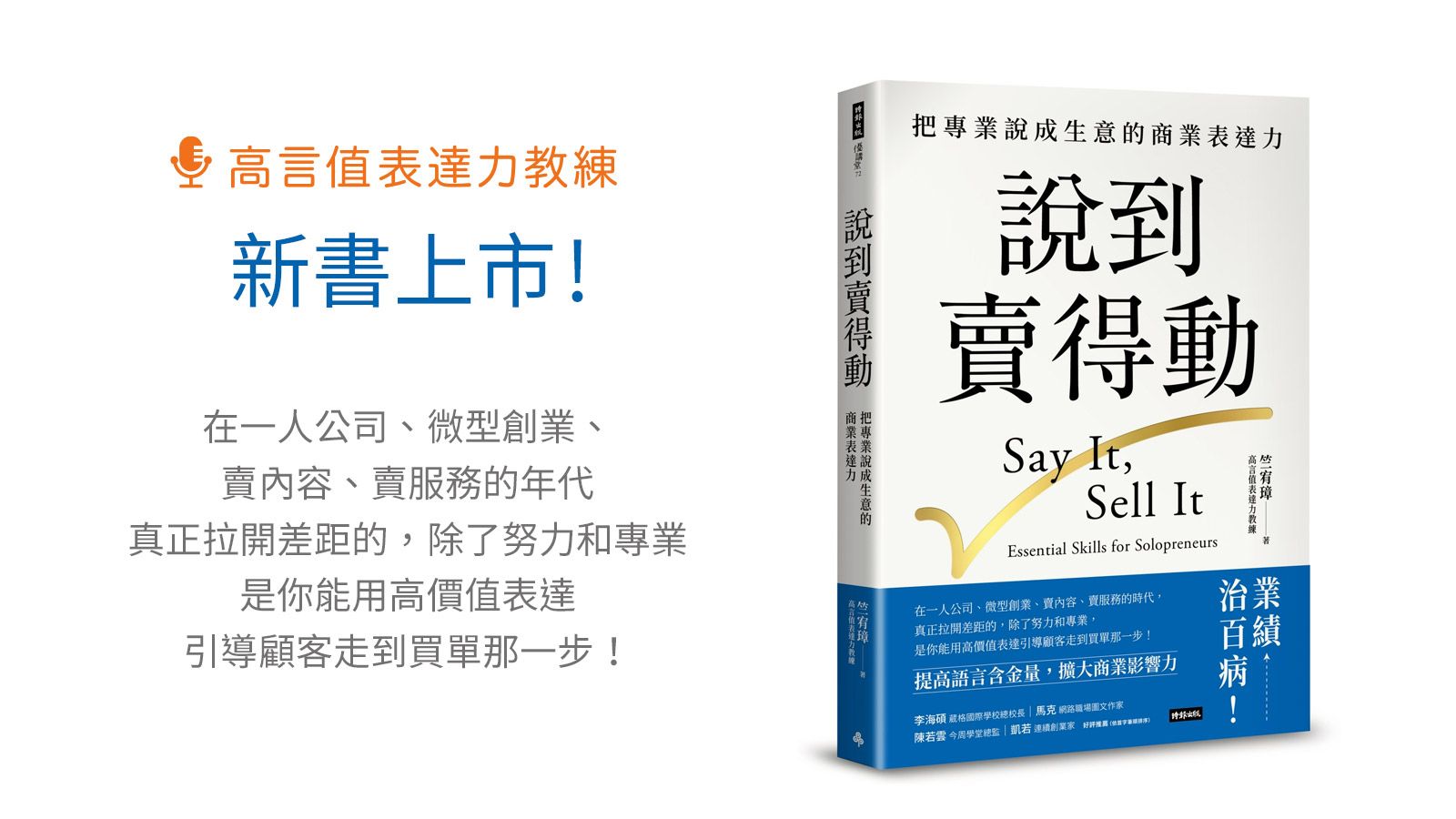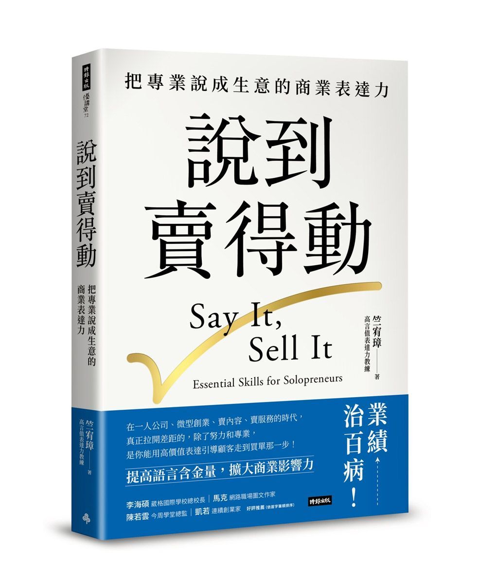 無論你是專業工作者、一人公司經營者、企業中高階主管,又或者只是單純的素人。只要你渴望藉由口語表達擴大個人影響力,這本書就適合你。